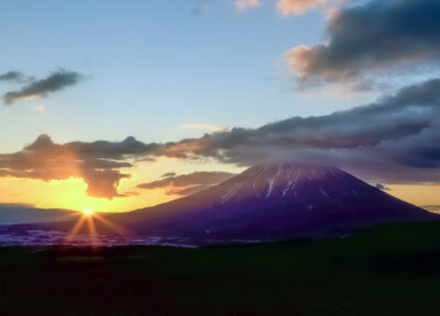 Gallary〈羊蹄山の四季〉に「雲間から差す光と山のシルエット」を追加