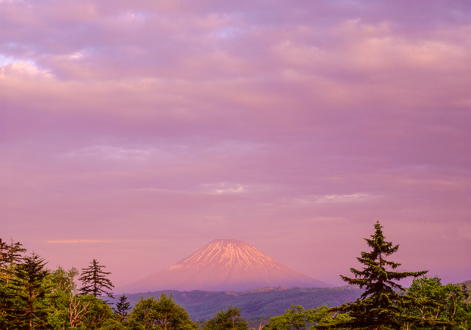 夕映えに染まる羊蹄山
